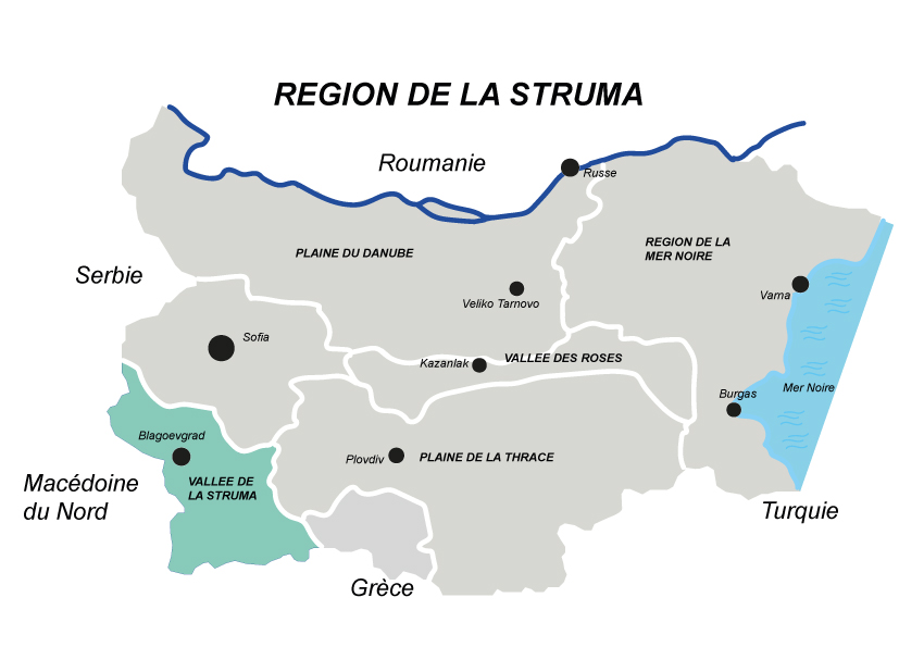 La région de la vallée de la rivière Struma (sud-ouest de la Bulgarie) n'est pas grande par sa taille, ne comprenant que 10 micro-régions et zones, mais présente des conditions climatiques très spécifiques, qui la rapprochent des zones méditerranéennes.